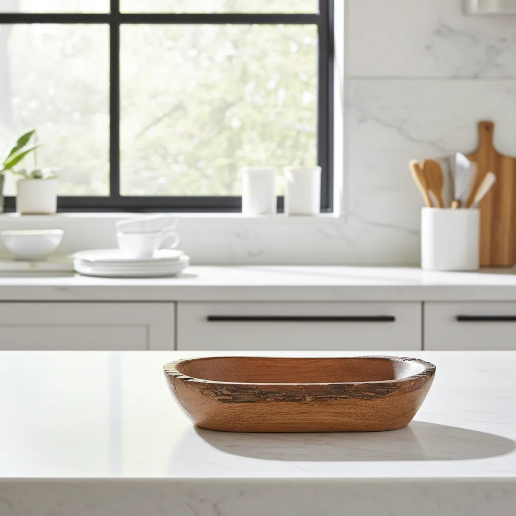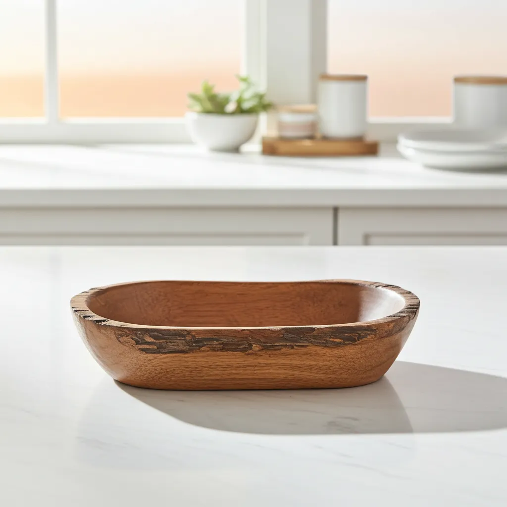 Retail kitchenware brands frequently source the oval wooden nut bowl to expand rustic wooden serving collections. Importers supplying homeware retailers in the USA, UK, Germany, and Australia often include acacia wood snack bowls within natural tabletop product lines where bark-edge designs appeal to customers seeking handcrafted kitchenware.