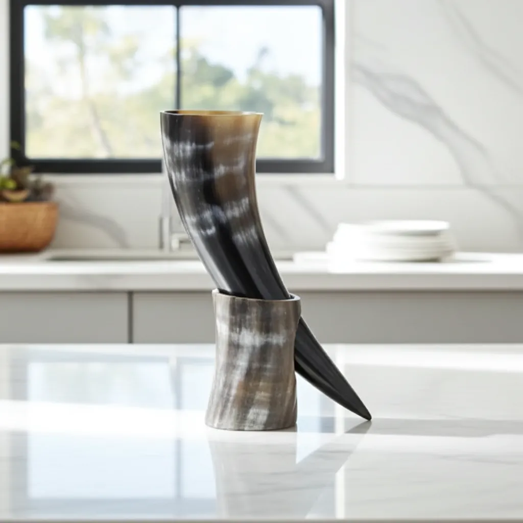 The Viking Drinking Horn With Stand from Razvi Exports brings history, craftsmanship, and functionality together in one striking piece. Made from 100 percent natural buffalo, ox, and cow horn, each horn is shaped, polished, and finished by skilled artisans who understand the value of authentic design. This product comes with a horn-made stand, giving it a complete display-ready appeal for collectors, bars, restaurants, Viking enthusiasts, and themed gift retailers.